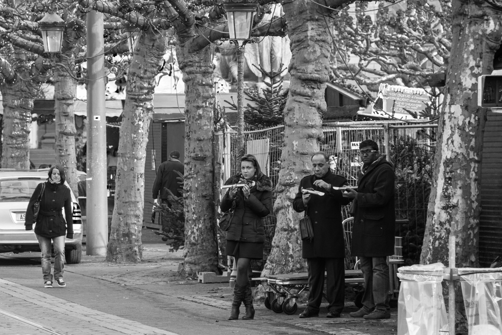 Des scènes de rue, parfois fugitives s’offrent à notre regard. Leur brièveté temporelle est à capter, l’image restitue l’instant ephémère d’une scène où se lisent des visages expressifs ou leur pouvoir évocateur.