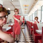Les années 50,   une atmosphère, des objets et un personnage tantôt femme d’intérieur, tantôt femme libre cédant parfois à la frivolité de l’instant.