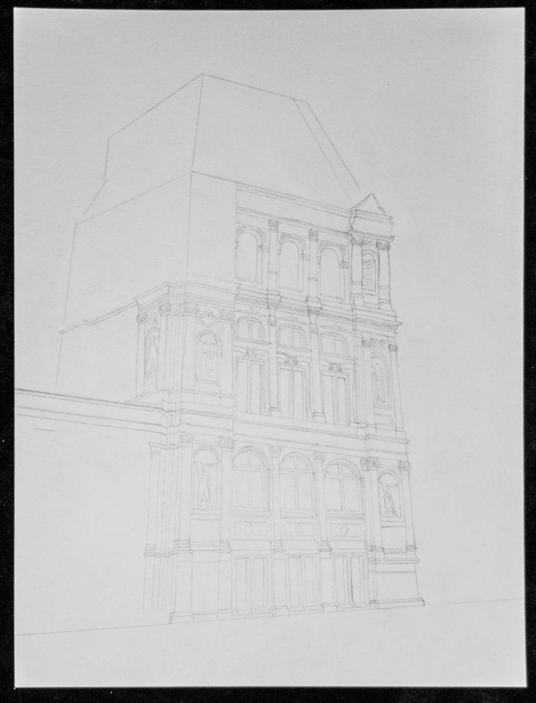 Dessin d’observation de l’hôtel de ville à Paris, effectué durant les dernières vacances.